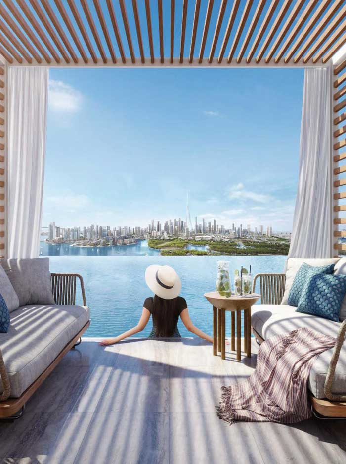 Panoramic views of the Lagoon, Dubai Creek & MBR City.